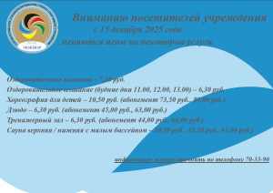 Уважаемые посетители с 15 декабря 2025 года изменяются цены на некоторые услуги, уточняйте информацию по телефону 70-33-90